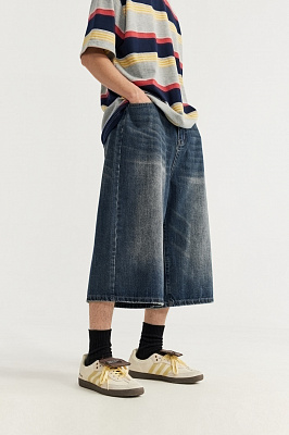 Шорты TrueSpin Cropped выстиранные с эффектом потёртостей. Самая актуальная модель этого сезона – джортсы – удобные и стильные «мешковатые» джинсовые шорты. Средняя посадка, очень свободный расклешённый крой. Эффектные потёртости. Диаметр низа у размера М составляет 35 см. Двойной шов в местах натяжения ткани. Застегиваются на молнию и пуговицу на ножке. Средней плотности джинсовая ткань (около 12 унций), состав 68% хлопок, 6% вискоза, 26% полиэстер. Привычные для джинсов 5 карманов и стальное полукольцо для крепления ключей. Модель подойдет как парню, так и девушке благодаря свободному крою.- Джортсы