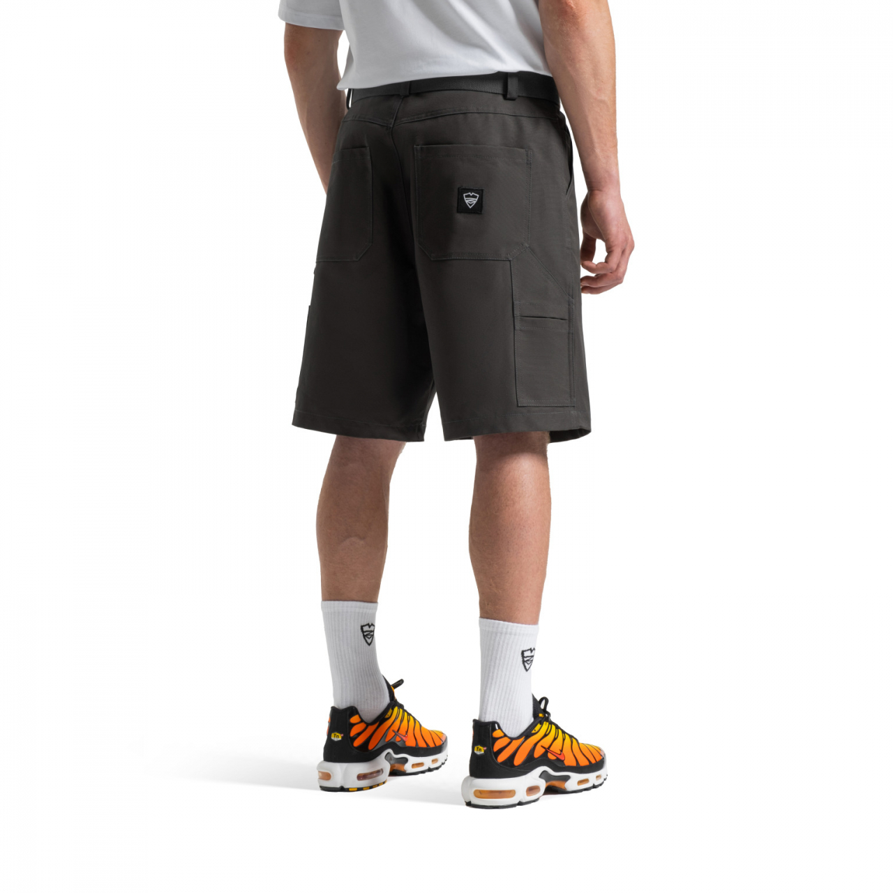 Шорты свободного кроя выполнены из плотного твила.- В дизайне изделия присутствуют элементы рабочих брюк — накладные карман для инструментов