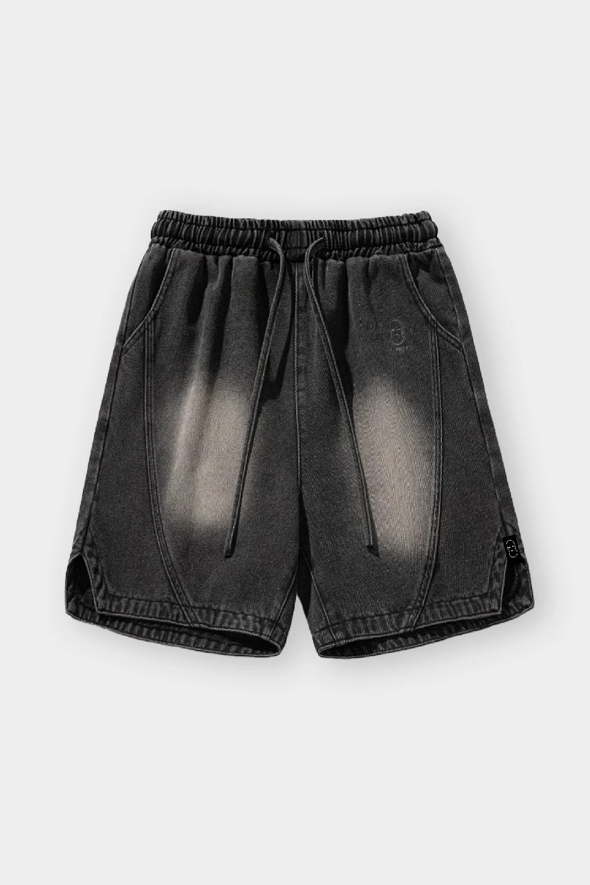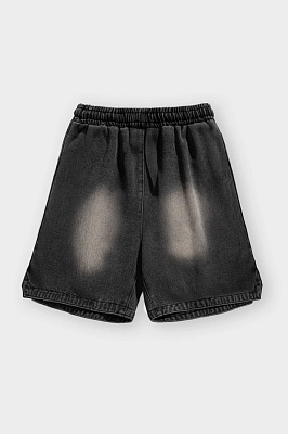 Шорты выполнены из прочного материала джинс.- Пояс на резинке с шнурком для регуляции