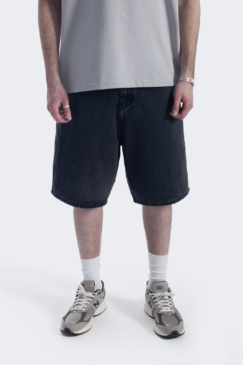 Джинсовые шорты бэгги чёрного цвета. Свободный крой обеспечивает комфорт и свободу движений, а плотный хлопковый деним делает модель прочной и долговечной. Чёрный оттенок легко сочетается с любым гардеробом.– Материал: Плотный деним