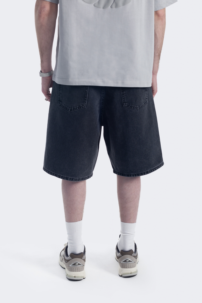 Джинсовые шорты бэгги чёрного цвета. Свободный крой обеспечивает комфорт и свободу движений, а плотный хлопковый деним делает модель прочной и долговечной. Чёрный оттенок легко сочетается с любым гардеробом.