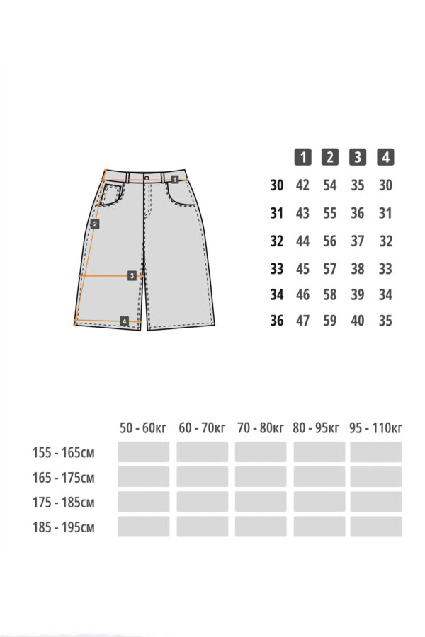 33 - талия полуобхват 45 см, длина по внешнему шву 57 см, ширина штанины в области бедра полуобхват 38 см, ширина штанины на выходе полуобхват 33 см