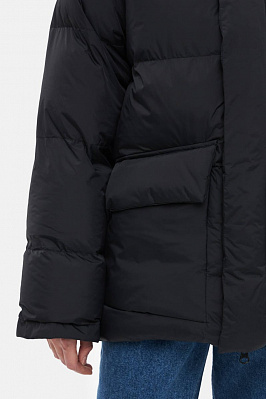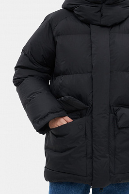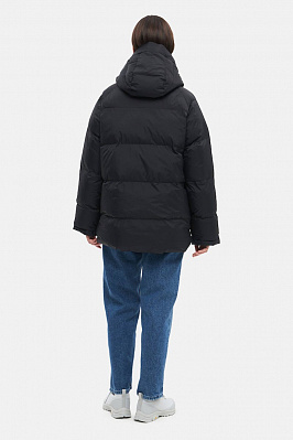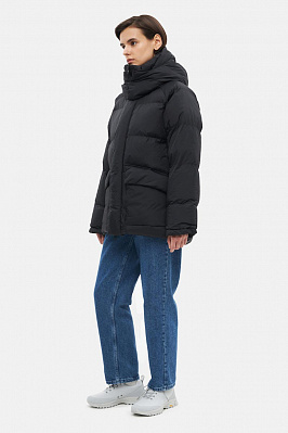 Укороченная зимняя куртка свободного кроя из непромокаемой мембранной ткани с утеплителем DuPont ™ Sorona®. Модель на молнии под планкой на магнитах дополнена отстегивающимся капюшоном, двумя накладными карманами с флисовым подкладом и одним внутренним.Трикотажные манжеты на рукавах.