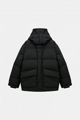 Укороченная зимняя куртка свободного кроя из непромокаемой мембранной ткани с утеплителем DuPont ™ Sorona®. Модель на молнии под планкой на магнитах дополнена отстегивающимся капюшоном, двумя накладными карманами с флисовым подкладом и одним внутренним.