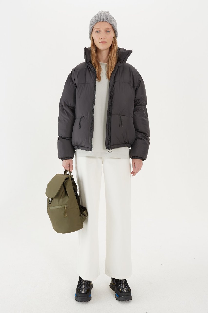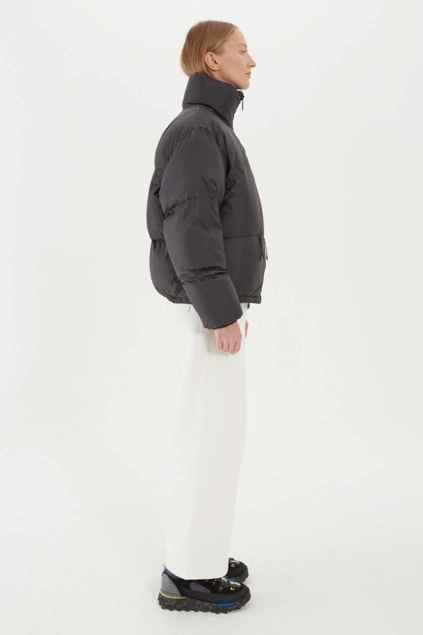 В коротком пуховике отсутствует капюшон и другие привычные атрибуты зимних курток бренда, но сохранена главная функция — быть тёплым и непродуваемым. Пуховик сделан из мягкого, матового нейлона и ультратёплого наполнителя DuPont™ Sorona®. Оверсайз размер, два прорезных кармана, плотный воротник и эластичные манжеты. Бомбер рассчитан до −20°C, в зависимости от личной термостойкости человека.