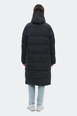 Удлиненный пуховик из непромокаемой ткани с утеплителем DuPont ™ Sorona®. Классическая модель прямого силуэта с капюшоном на кулисе и двумя боковыми прорезными карманами на молнии. Для дополнительного комфорта по низу куртки расположен разрез, а на рукавах предусмотрены трикотажные манжеты.