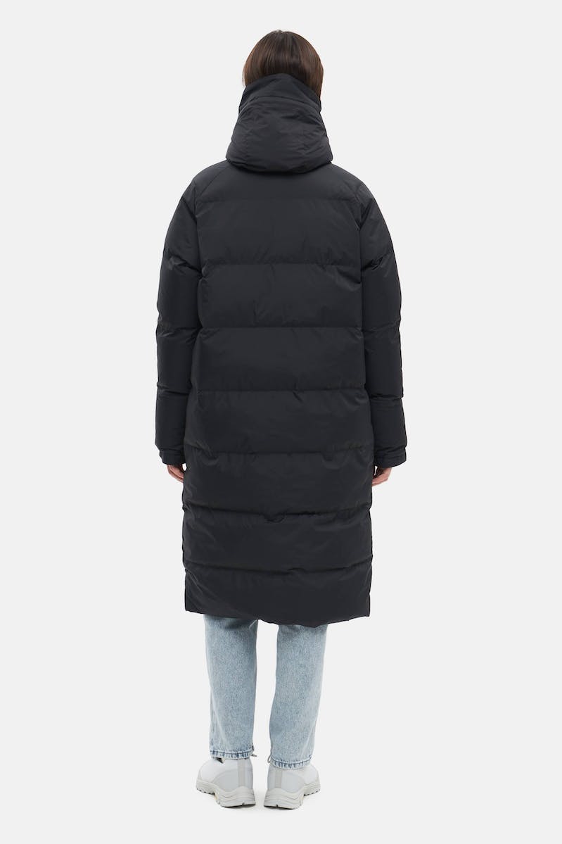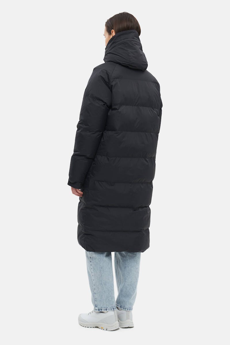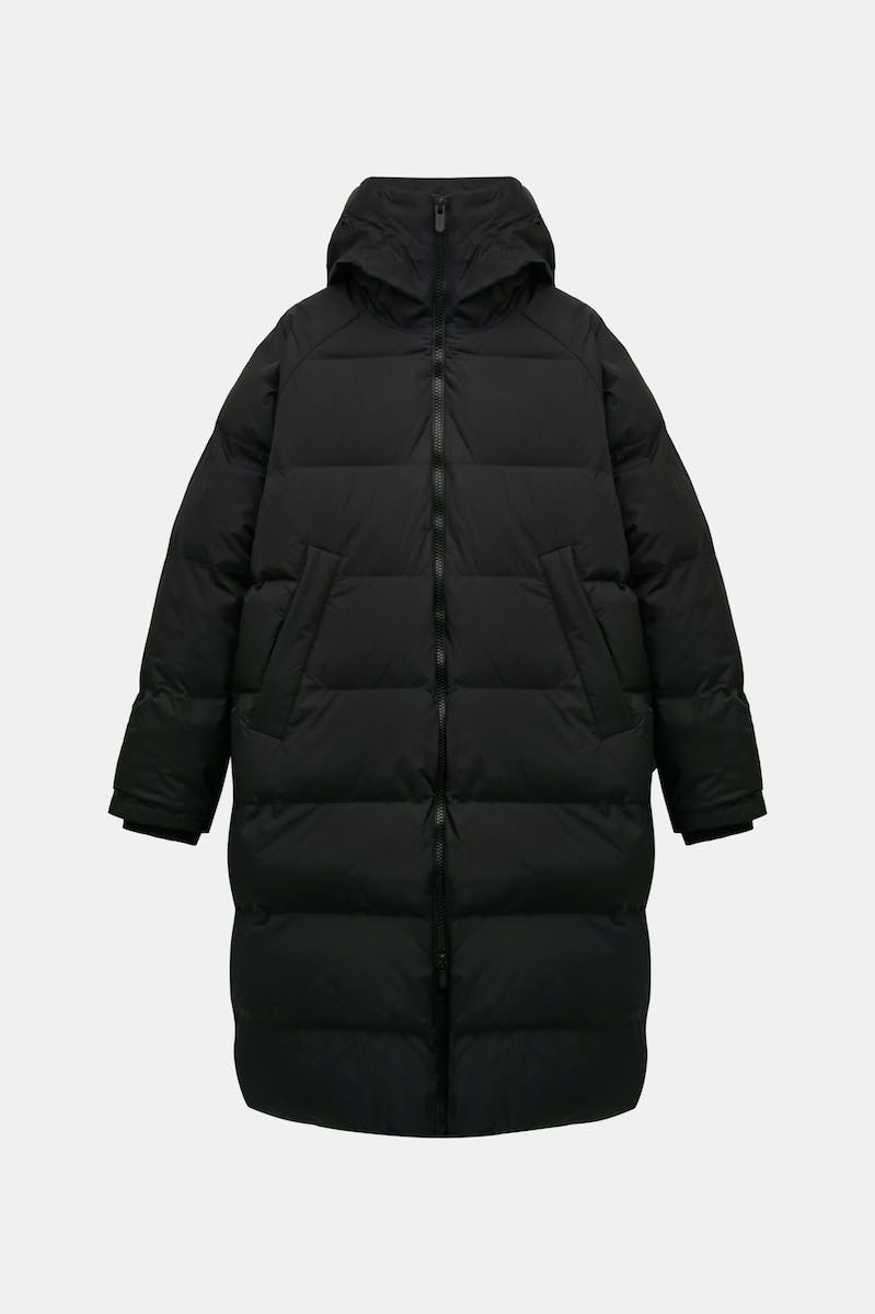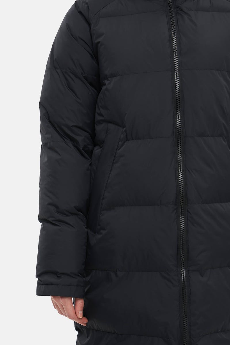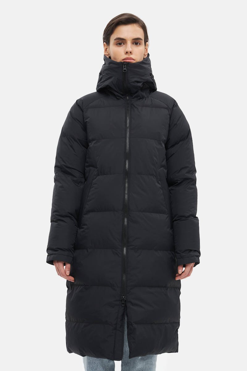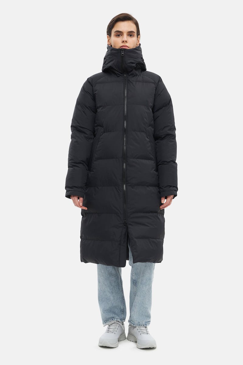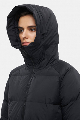 Удлиненный пуховик из непромокаемой ткани с утеплителем Dupont ™ Sorona®. Классическая модель прямого силуэта с капюшоном на кулисках дополнена трикотажными манжетами. Боковые карманы на молнии имеют мягкий флисовый подклад для дополнительного комфорта. Внутренний карман для важных мелочей.