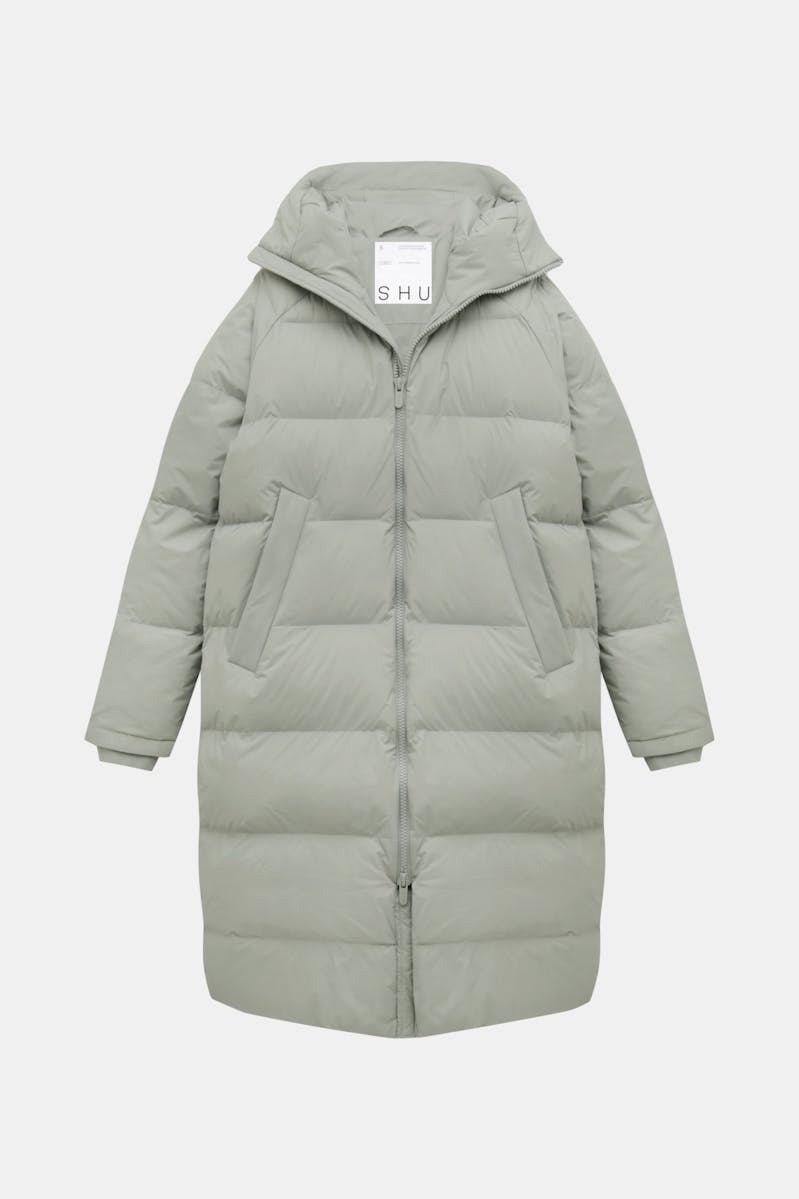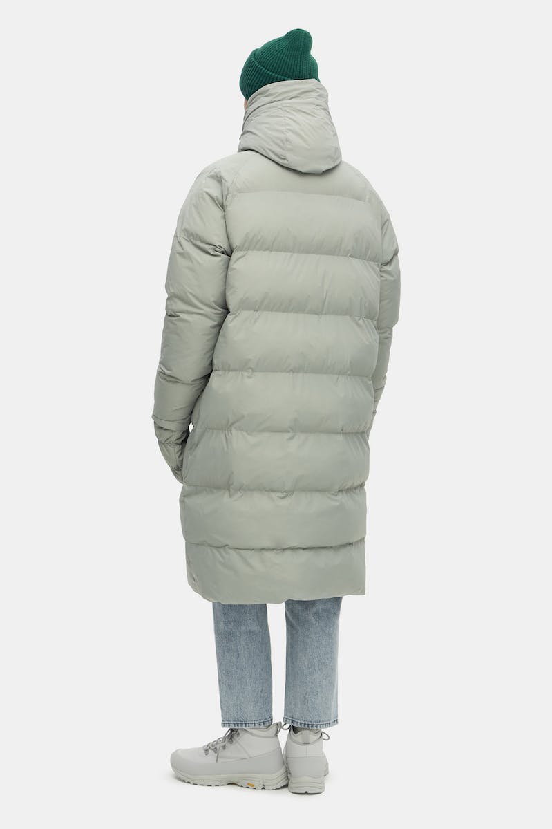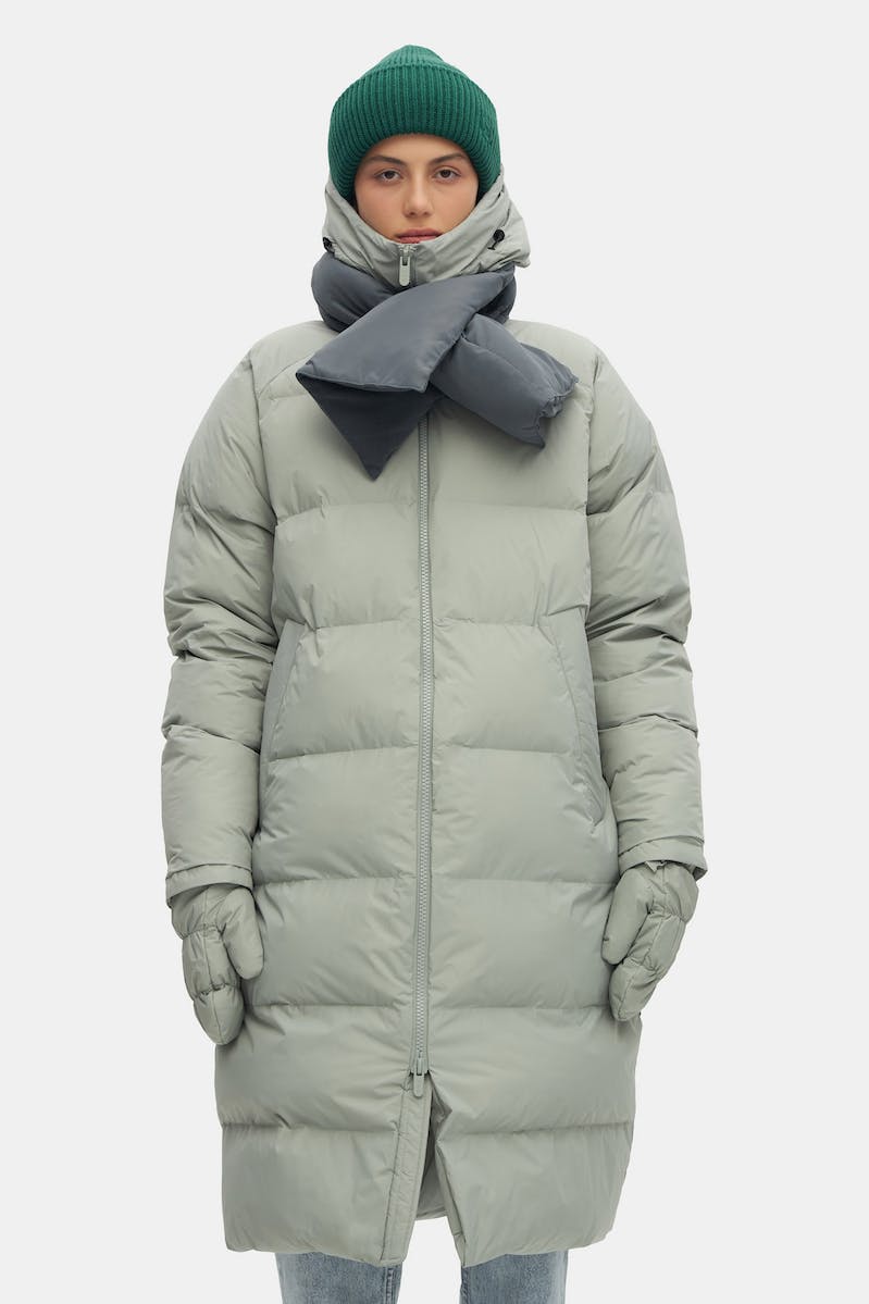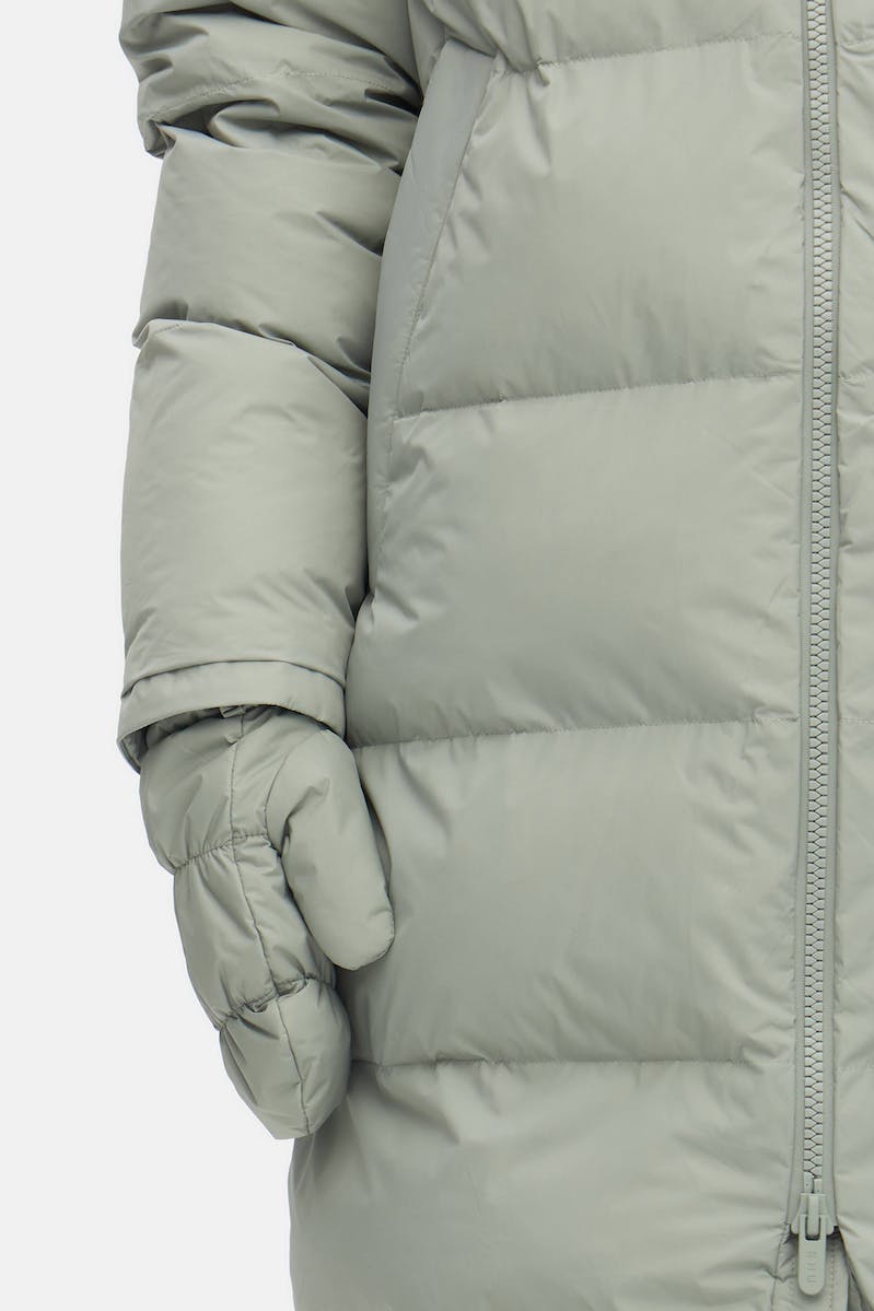 Удлиненный пуховик из непромокаемой ткани с утеплителем Dupont ™ Sorona®. Классическая модель прямого силуэта с капюшоном на кулисках дополнена трикотажными манжетами. Боковые карманы на молнии имеют мягкий флисовый подклад для дополнительного комфорта. Внутренний карман для важных мелочей.