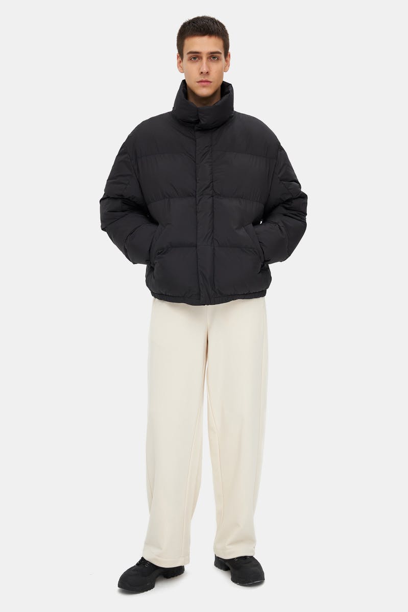 Укороченная куртка оверсайз из влагонепроницаемой мембранной ткани с утеплителем DuPont™ Sorona®. Модель свободного кроя дополнена объемным воротником и боковыми карманами.