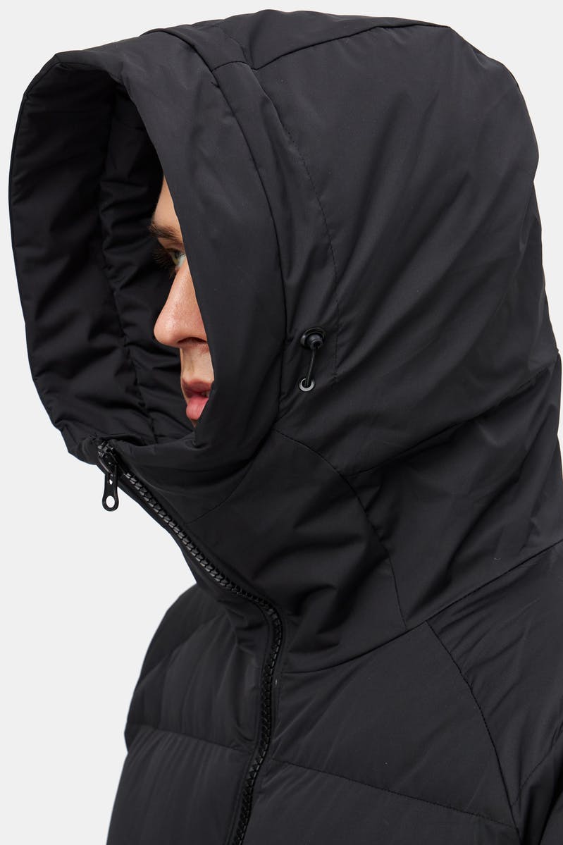 Глубокий капюшон, высокий воротник, утепленные карманы, плотные манжеты и высокотехнологичный наполнитель от американского бренда DuPont™ Sorona® делают пуховик морозоустойчивым. Наполнитель двуслойный: внешняя сторона оснащена био-пухом плотностью 670 г/м², внутренняя — монолитным утеплителем плотностью 120 г/м². Такая технология позволяет защитить от холода и ветра части, где проложена строчка, разделяющая био-пух на секции.