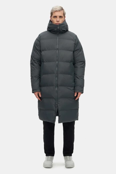 Зимний пуховик из непромокаемой ткани с утеплителем Dupont™ Sorona®. Классическая модель прямого силуэта с капюшоном на кулисках и мягкими трикотажными манжетами. Два прорезных кармана с мягким флисовым подкладом и один внутренний карман на молнии.
