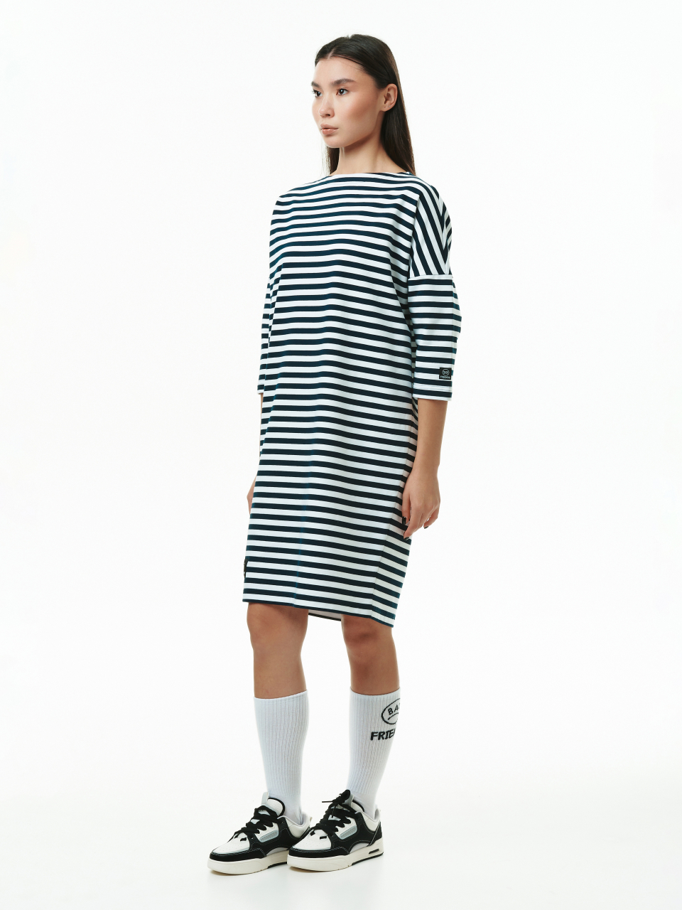 Платье THE BAD FRIENDS Dress T-shirt Stripes белый-темно-синий
