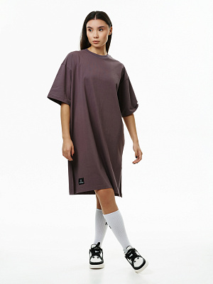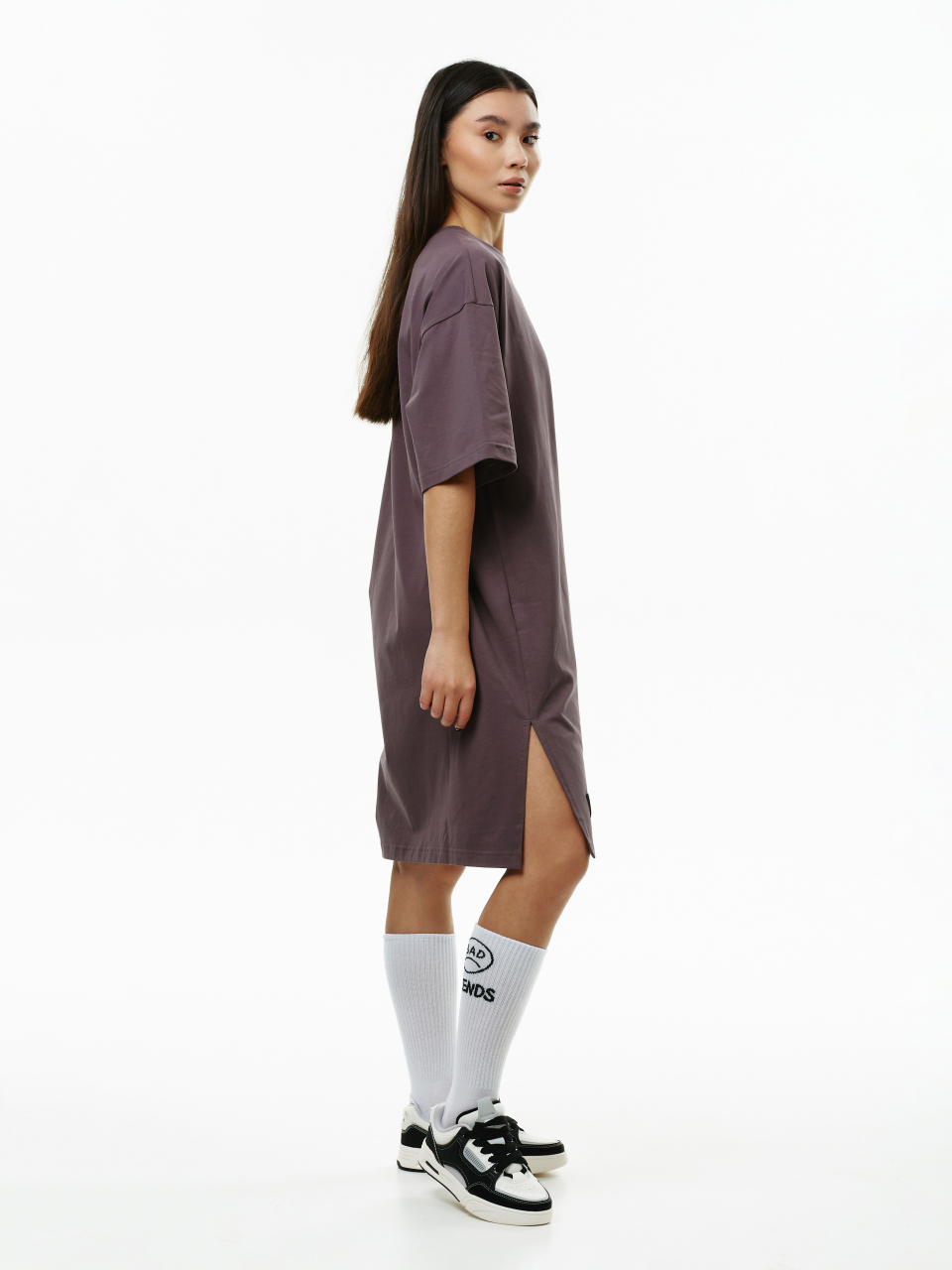Удлиненное женское платье-футболка свободного кроя из плотного хлопка.