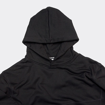 Толстовка с капюшоном Terry Bside черная, выполненная из премиального хлопка с легким велюровым начесом. Классическая модель худи с карманом кенгуру на талии, опущенная линия плеча, перевернутые вставки на рукавах в области предплечий и поясницы, швы обработанные фигурной строчкой подчеркивающие линии кроя. Дизайн завершает однотонный вышитый логотип бренда на левом плече, эластичные резинки на манжетах и подоле. Капюшон опционально имеет скрытые петли для шнурка, который при желании можно установить самостоятельно.