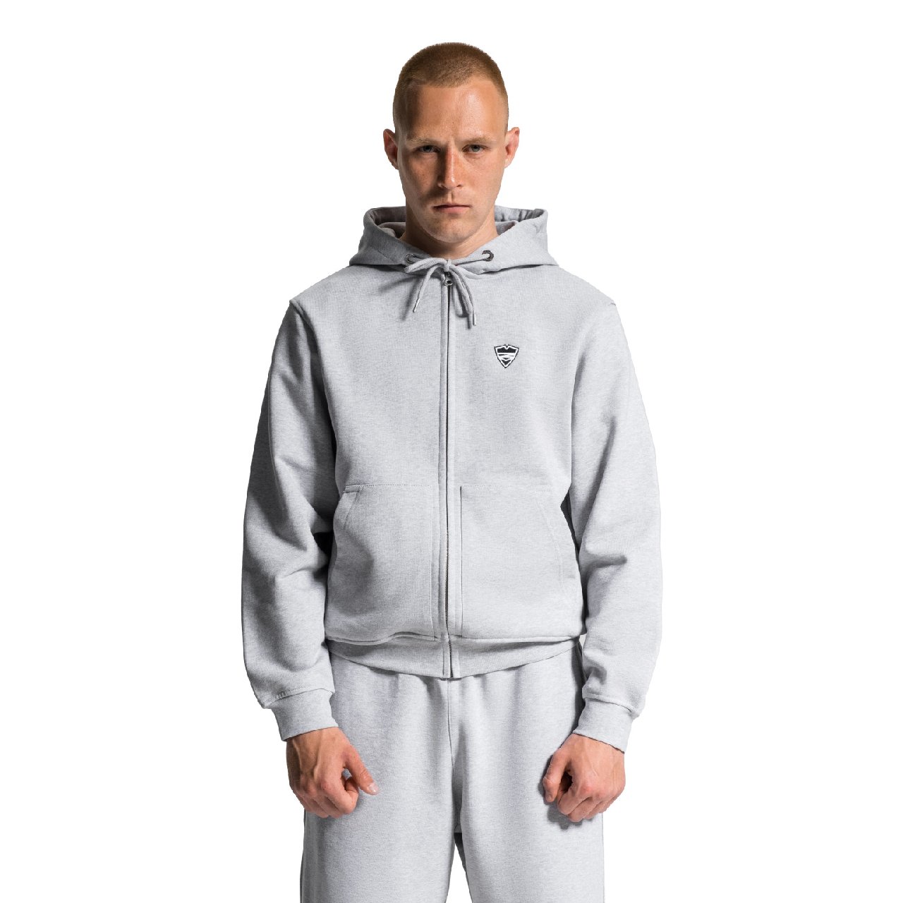 Зип-худи свободного кроя выполнено из хлопкового футера повышенной плотности без начеса.