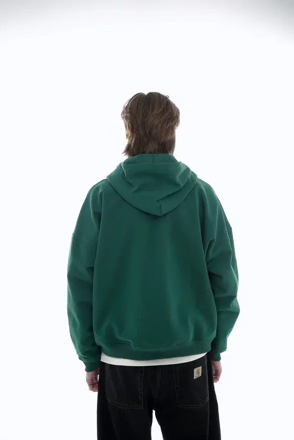 Изготовленный из плотного хлопка, этот худи приятно ощущается на теле и идеально подходит как для активного отдыха, так и для спокойных прогулок по городу. Металлическая молния и белая вышивка на груди создают особый стиль вещи.