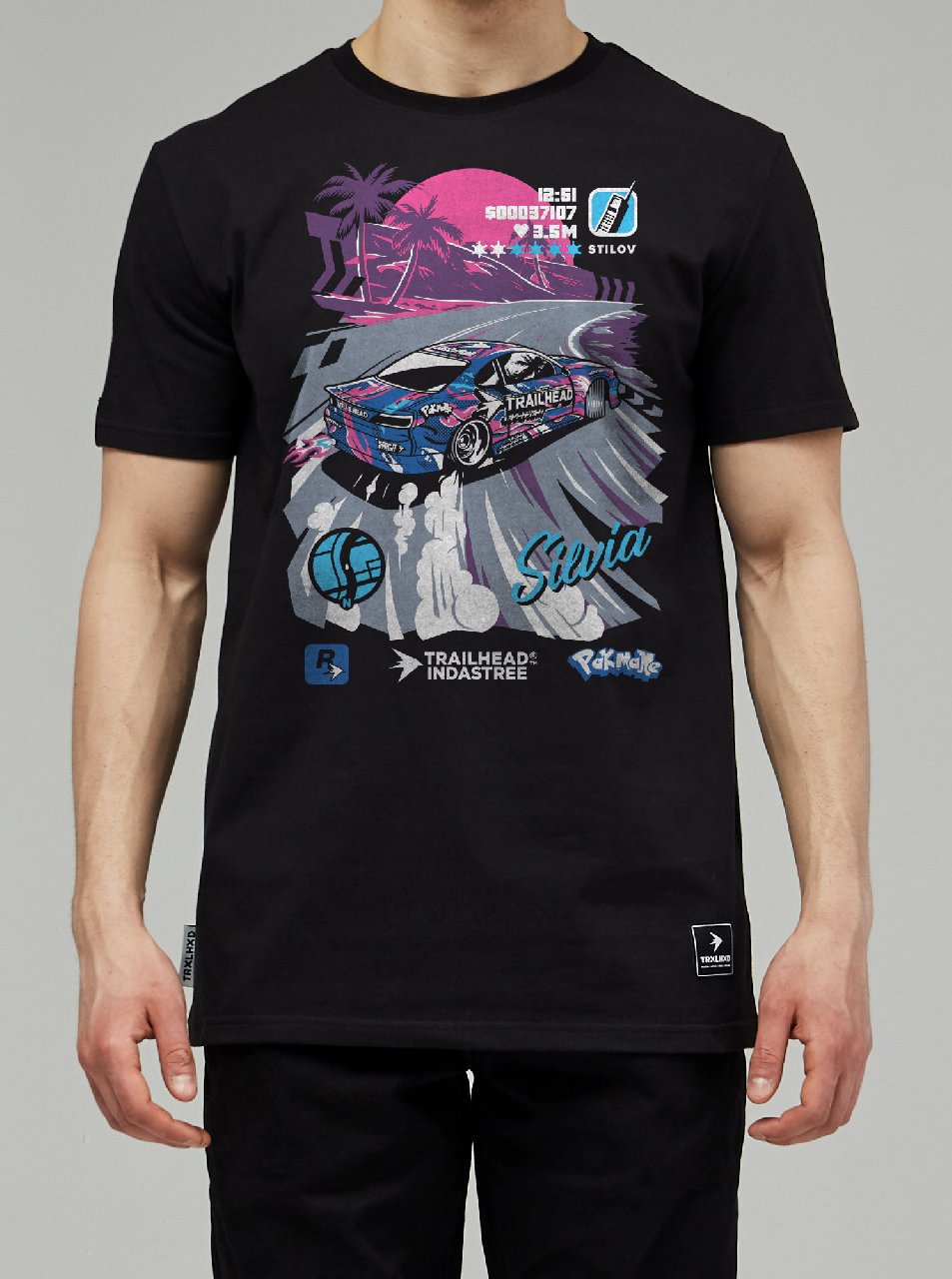 Футболка TRAILHEAD «Silvia» — стильный элемент гардероба для поклонников автомобильной культуры и динамичного дизайна. Чёрная футболка с ярким, детализированным принтом в стиле ретро-футуризм сразу привлекает внимание.