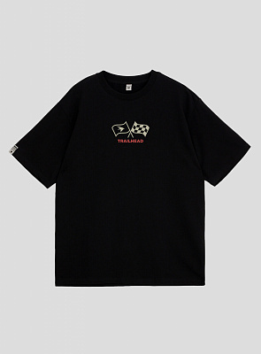 Дизайн дополнен динамичными графическими элементами и логотипами «TRAILHEAD» и «TXD», что придаёт футболке урбанистический, немного дерзкий характер.