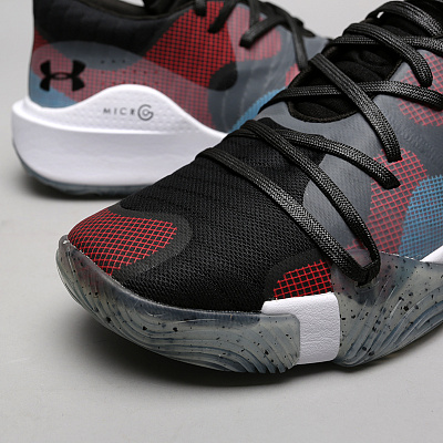 Низкие баскетбольные кроссовки от бренда Under Armour модели UA Spawn Low. Модель с верхом из сетчатого текстиля с вентилируемыми свойствами укреплена красными и синими вставками flexgear. Мягкая подошва с амортизирующей вставкой Micro G и материалом EVA отлично справляется с нагрузками при прыжках и дриблинге. Фиксация стопы происходит за счёт укрепленных вставок и многоуровневой системы шнуровки , связанной с мидсолем.