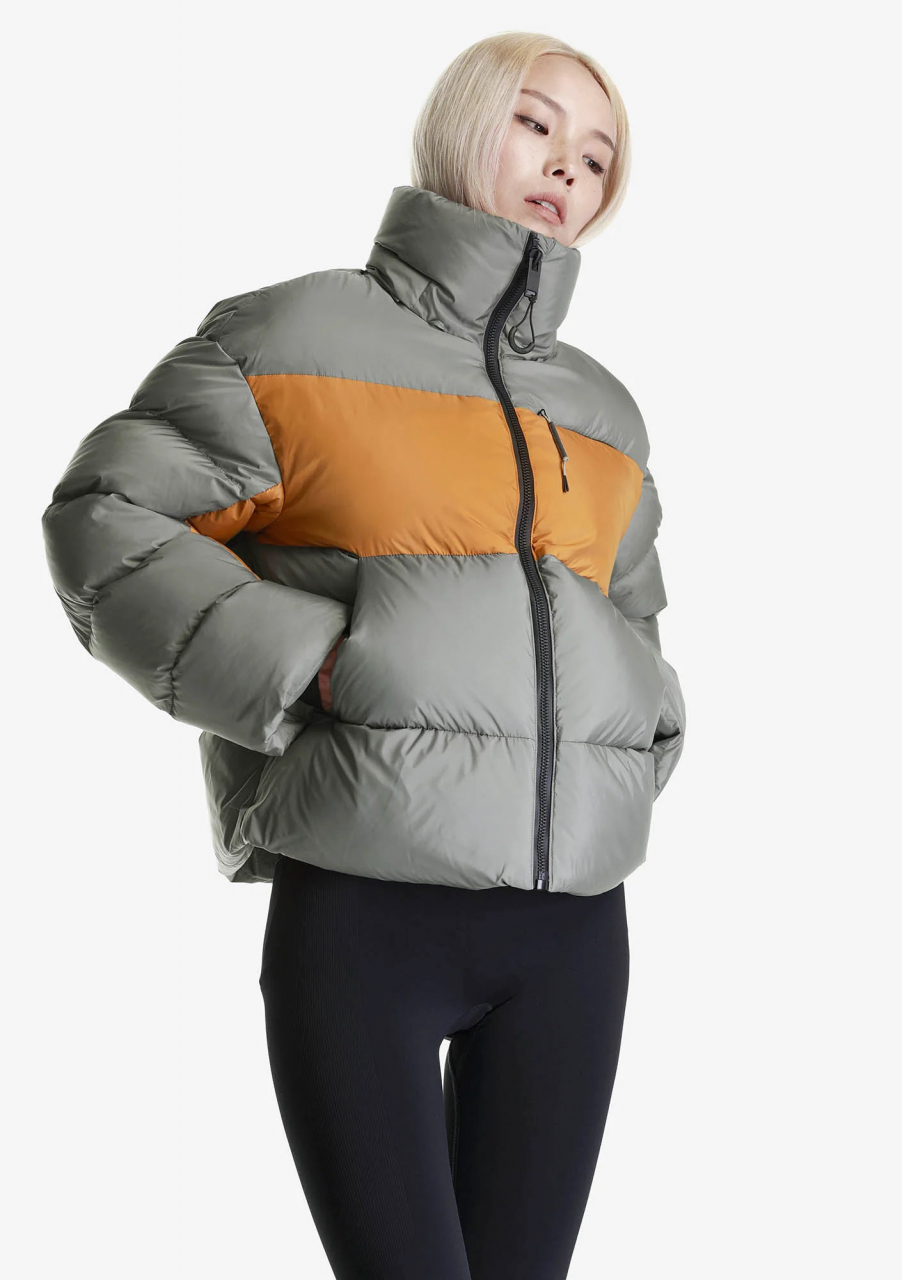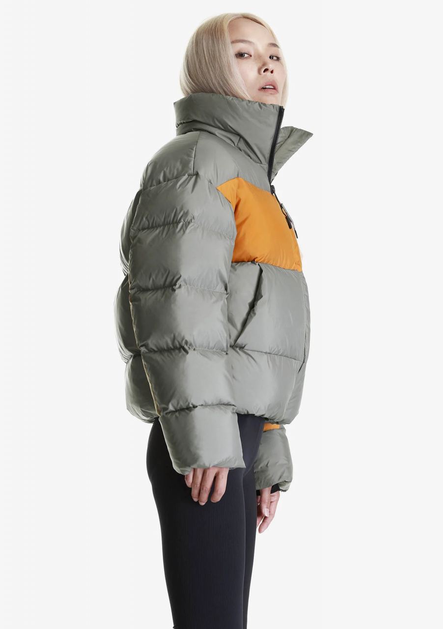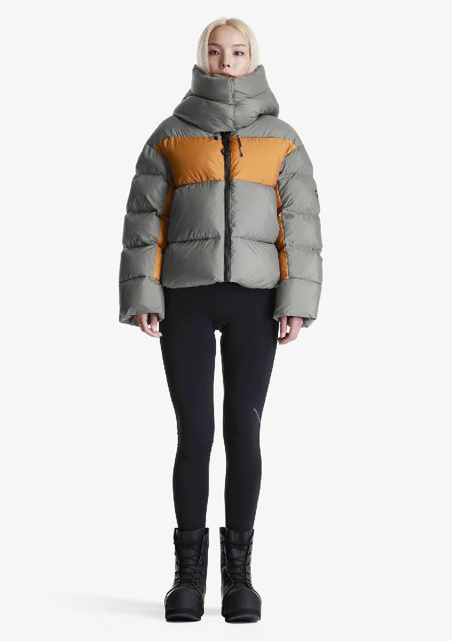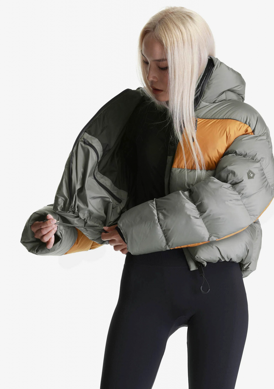 Функциональный пух — 50% утиный пух (90/10), 50% полиэстеровые коконы Repreve® из переработанных пластиковых бутылок, значительная часть которых поднята из океана. Эта технология позволяет использовать вдвое меньше пуха водоплавающих, сохраняя уровень теплозащиты на уровне пуховика из 100% натурального пуха. Упругость 670FP.