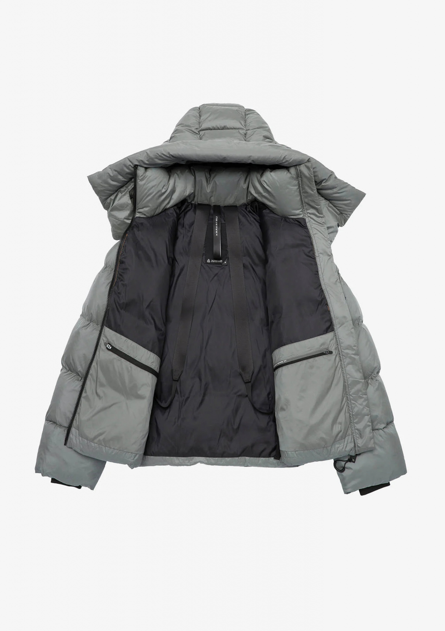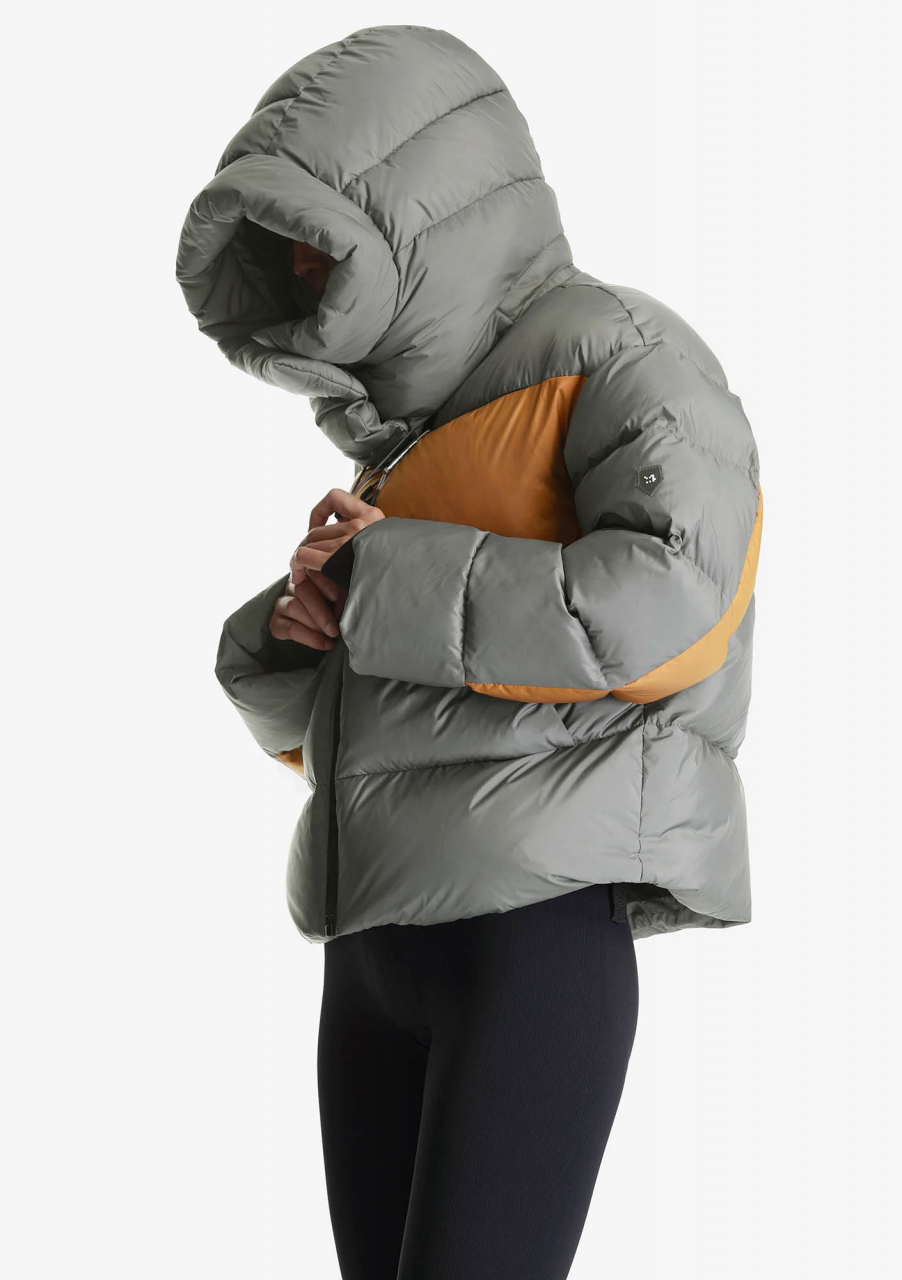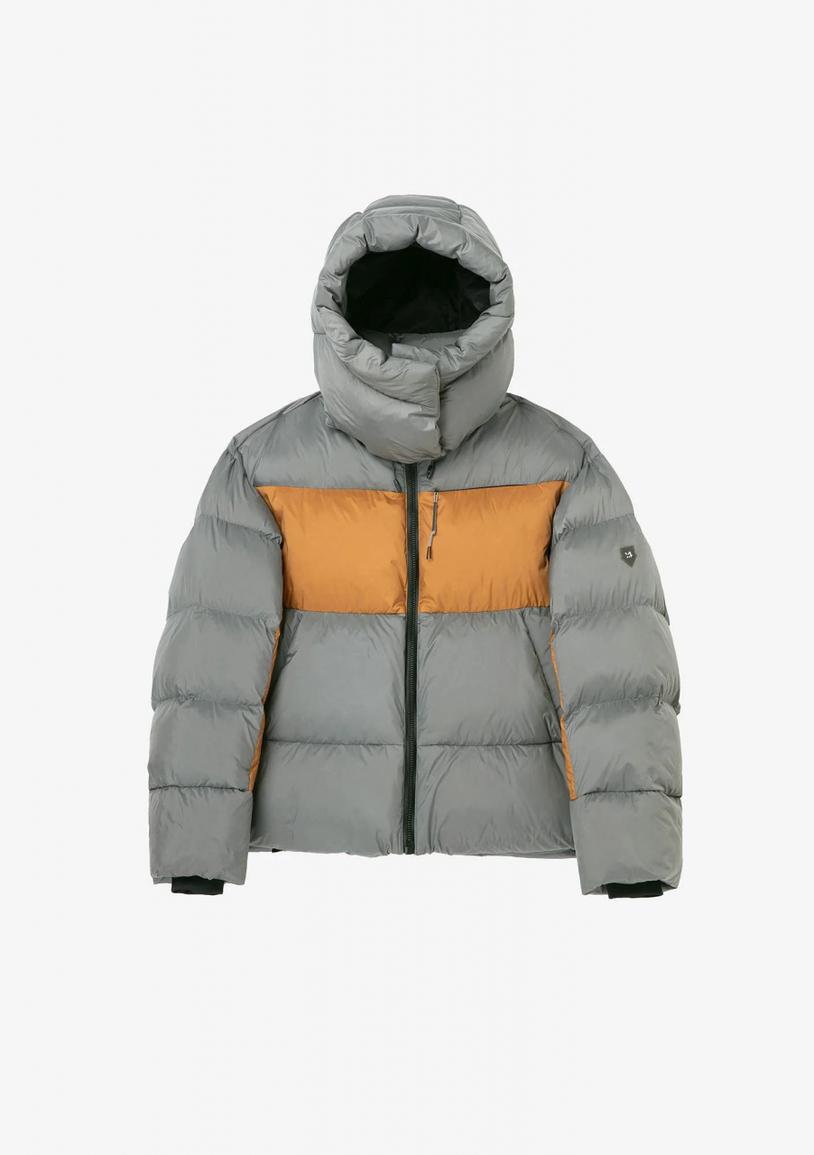 Пуховик ROOK из экологичной ткани и натурального пуха, обогащённого микроскопическими коконами из переработанного пластика. Оснащён съёмным капюшоном и внутренними стропами, позволяющими носить пуховик, как сумку за плечами. Назван в честь горного хребта Рука на обратной стороне Луны.