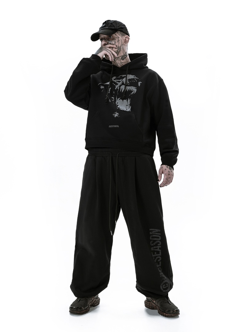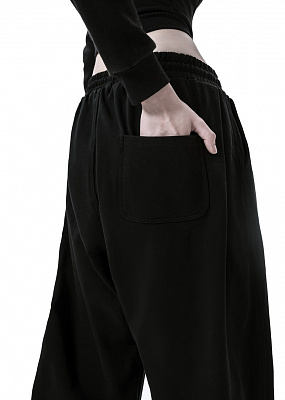 Свободный оверсайз крой. Каждый размер изначально сделан в оверсайз, поэтому рекомендуем брать свой размер. Благодаря резинке на талии и шнурку брюки могут иметь разную посадку (завышенную на талии или заниженную на бёдрах). В брюках есть 2 внутренних передних кармана и 1 задний карман. Фиксация резинками на лодыжках.