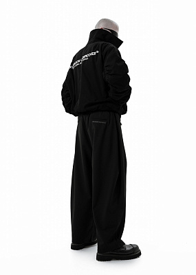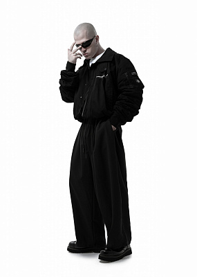 Элегантный и строгий свободный крой бананы с сужением к низу. Талия на резинке с шнуром для регуляции и фиксации посадки. Два боковых кармана и задний карман с вышивкой брендинга.Строгие, продуманные, без лишнего шума. Как кунай, спрятанный в складках хаори, эти брюки сочетают в себе точность и скрытую угрозу.