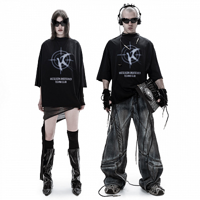 Футболка “Techno Club” - это вспышка на темном танцполе. Полупрозрачный, “призрачный” силуэт, стелется как дым в отблесках стробоскопа.