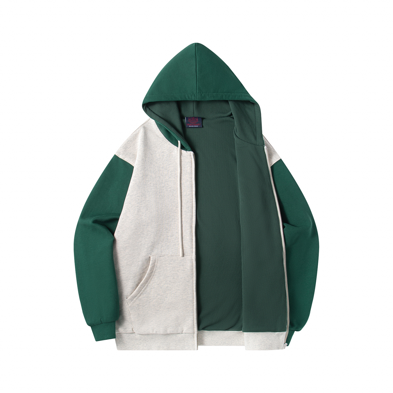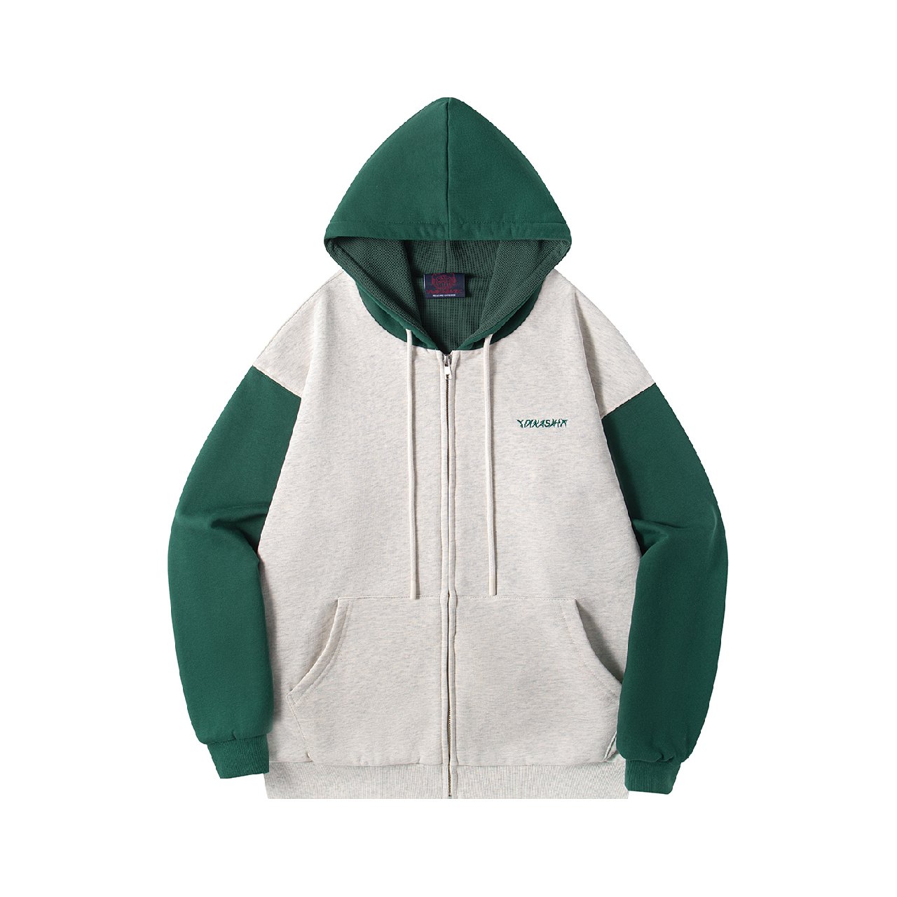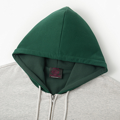 Худи на молнии YMKA SHIX "HTF" светло-серый/зеленый