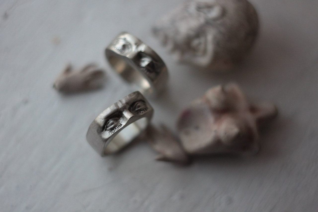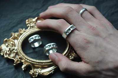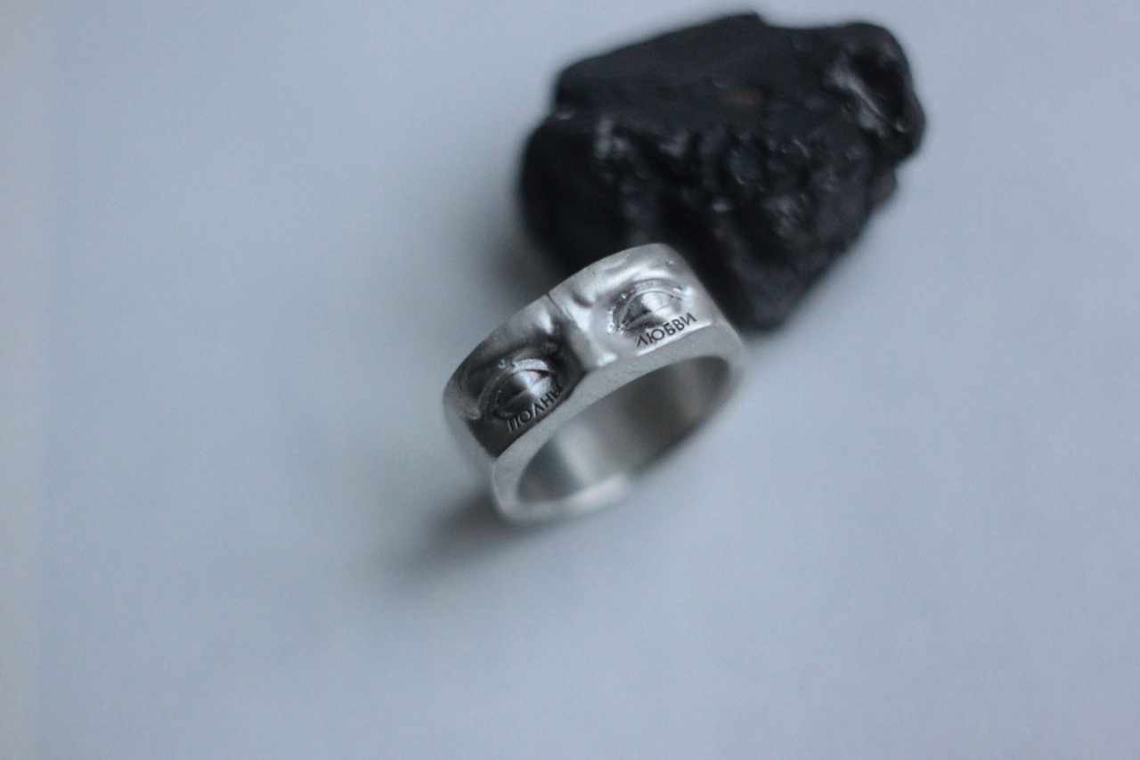 Матовое кольцо по мотивам скульптуры Микелянджело "Давид" и Russian criminal tattoo.