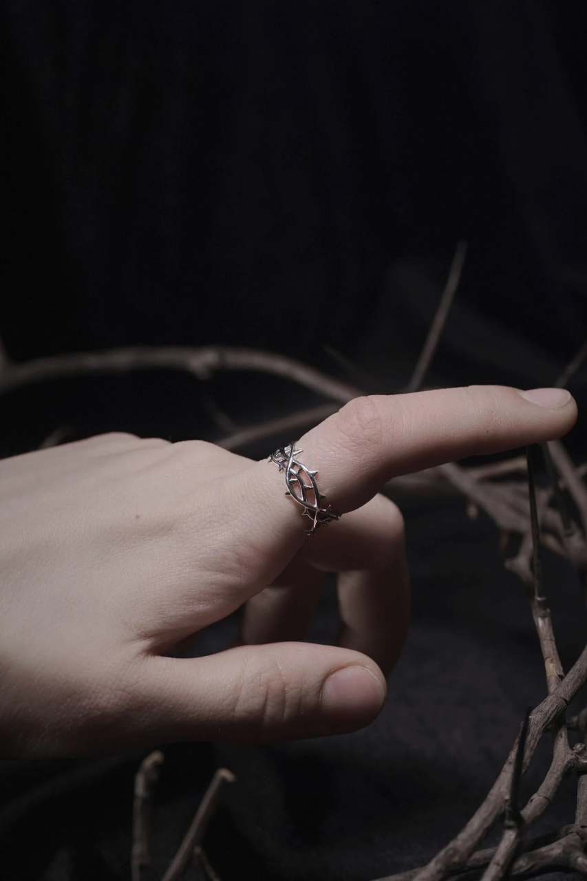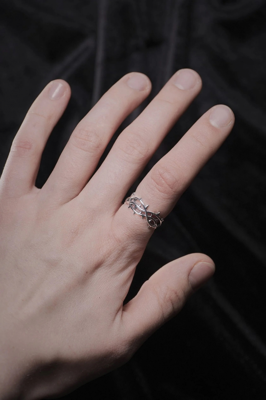 Обновленная - третья версия кольца терновый венец. Более объемные и извивающиеся ветки. Ширина кольца с учетом шипов около 9 мм, без шипов - 7 мм.