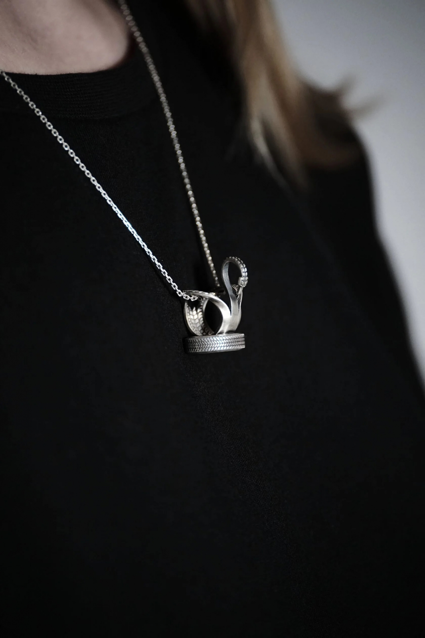 Кулон в форме лебедя из покрышек, который хорошо знаком всем жителям пост-советского пространства, хэдлайнер ЖКХ арта.Средний вес без цепи 10 грамм.