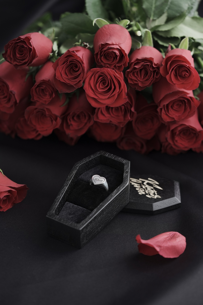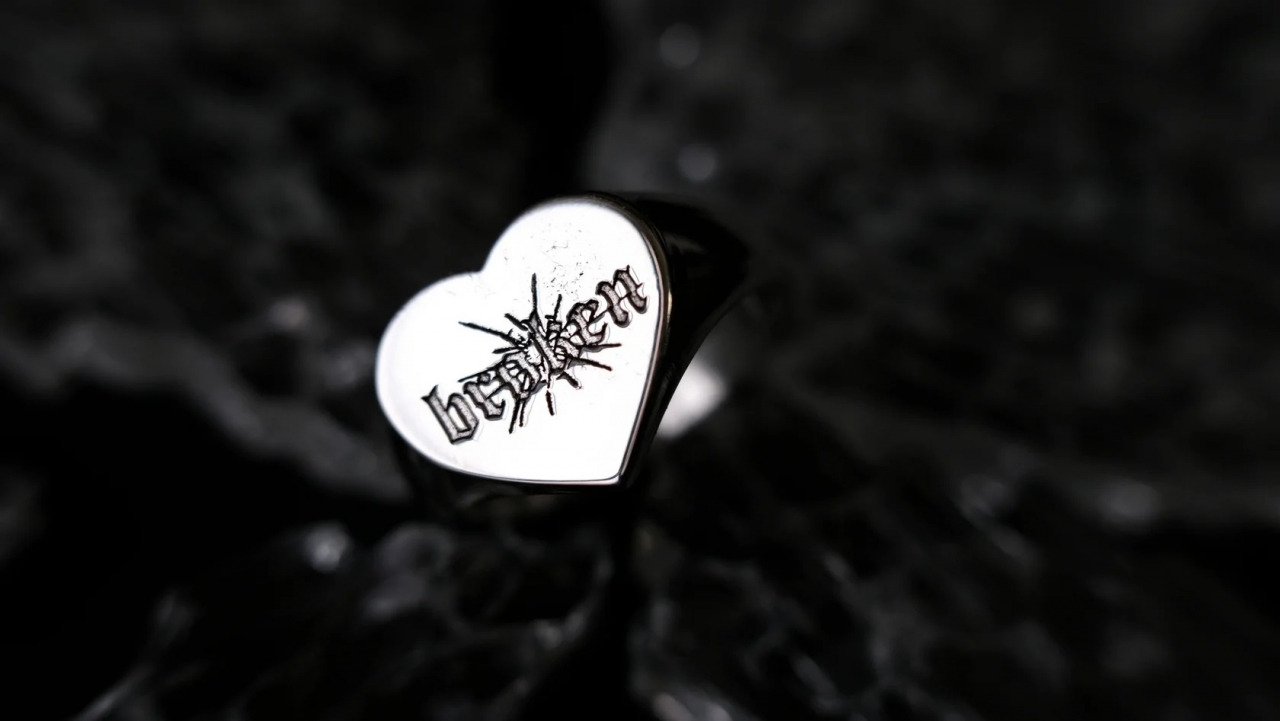 Обновленное кольцо-печатка с площадкой в форме сердечка (〜13мм) и гравировкой.