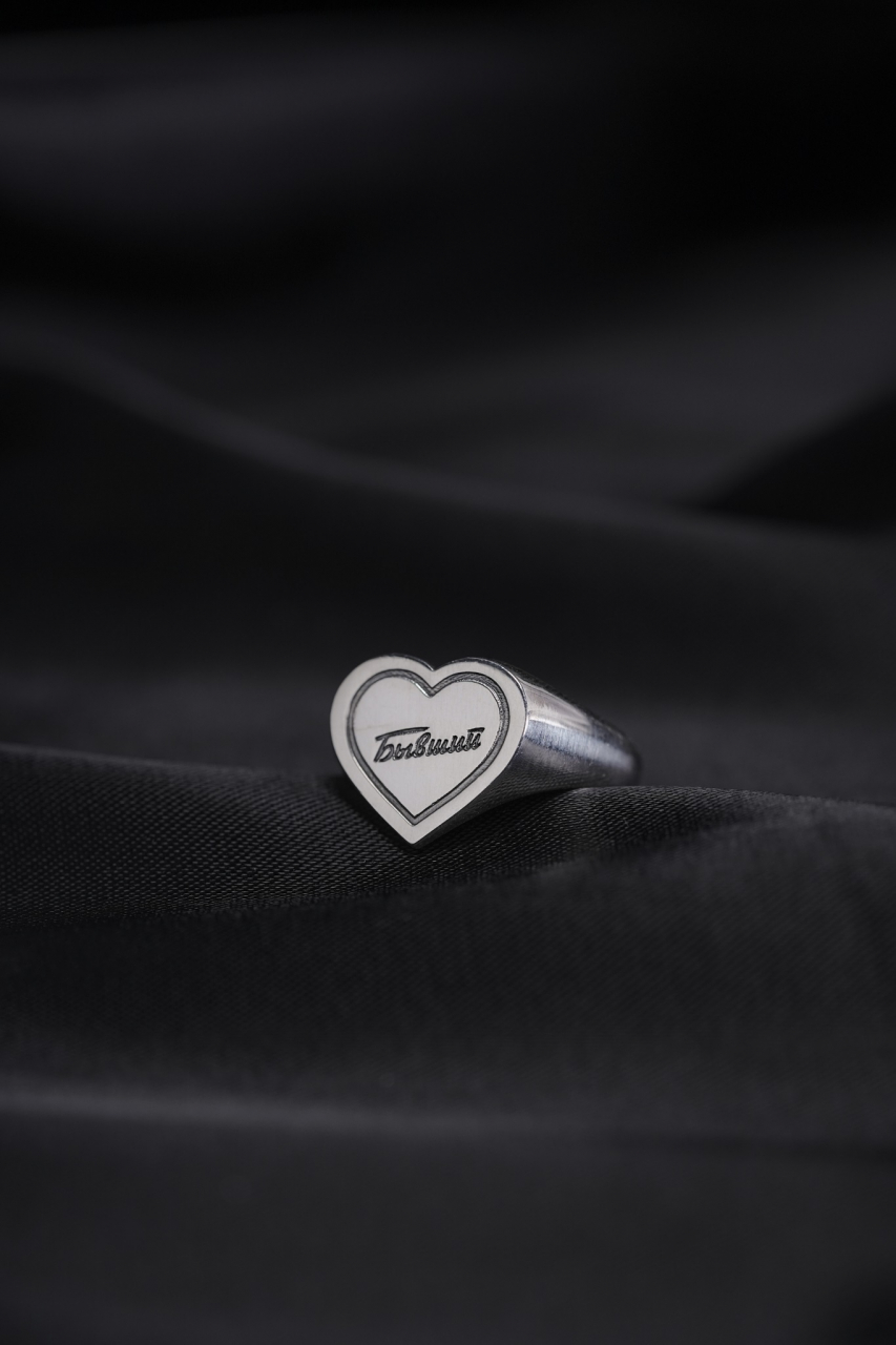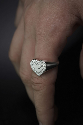 Обновленное кольцо-печатка с площадкой в форме сердечка (〜13мм) и гравировкой.Кольцо выполнено с глянцевым финишем.