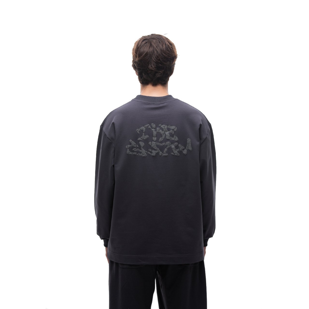 Long the glow – лонгслив из плотного френч терри оверсайз кроя. С логотипом на груди, стилизованным под коллекцию. На спине отпечаток высохшей земли – напоминание о свечении, которое может иссушить весь мир.В шве бирка с молнией.