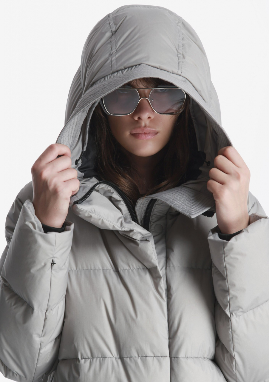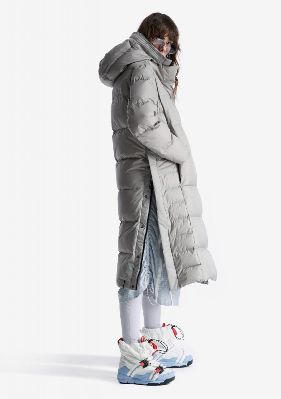 Пуховик с высоким уровнем теплозащиты до -30 °С. На основе функционального утеплителя из натурального пуха, обогащённого микроскопическими коконами из переработанного пластика. Оснащён глубоким капюшоном с ветрозащитной горловиной, боковыми шлицами с доступом к внутренним карманам и внутренними стропами для переноски за плечами. Актуален для активных передвижений по городу и путешествий. Назван в честь лунного кратера Aitken.- Туннельный капюшон с широким отворотом, высокой горловиной и двойной системой регулировки глубины;