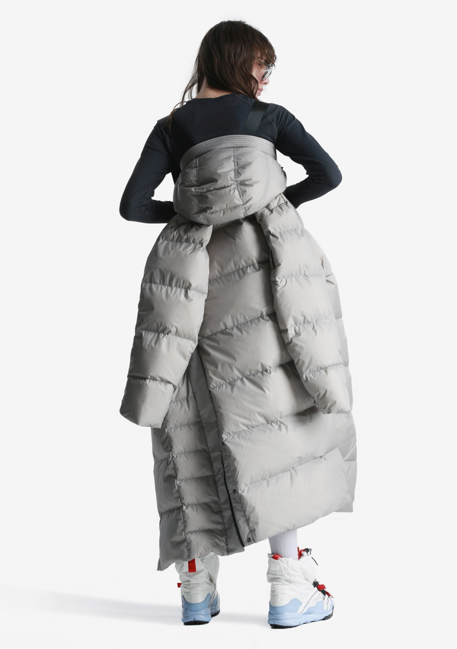 Пуховик с высоким уровнем теплозащиты до -30 °С. На основе функционального утеплителя из натурального пуха, обогащённого микроскопическими коконами из переработанного пластика. Оснащён глубоким капюшоном с ветрозащитной горловиной, боковыми шлицами с доступом к внутренним карманам и внутренними стропами для переноски за плечами. Актуален для активных передвижений по городу и путешествий. Назван в честь лунного кратера Aitken.