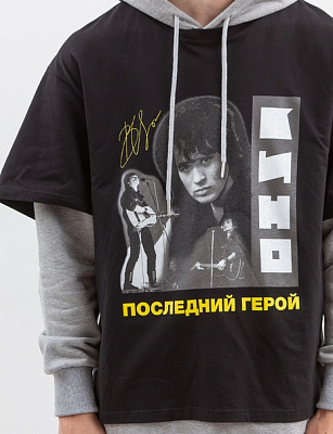 Толстовка с футболкой ZIQ & YONI x КИНО черная/серая