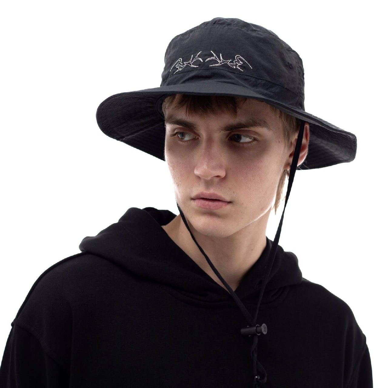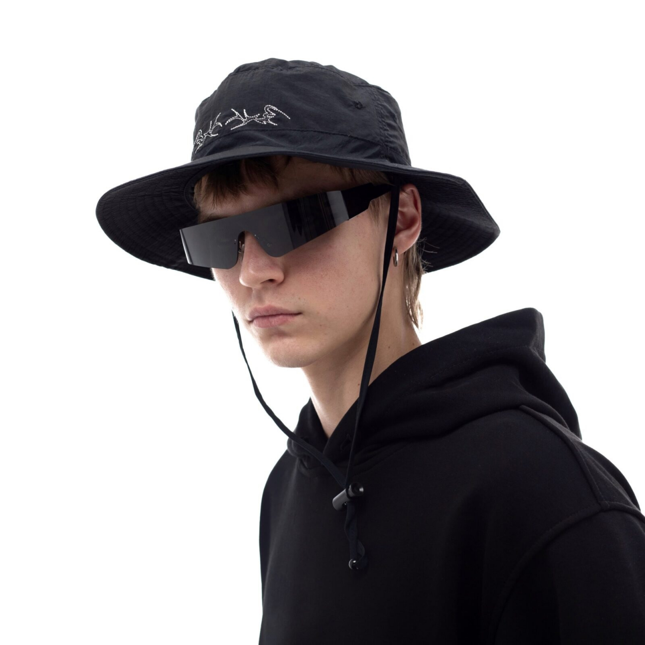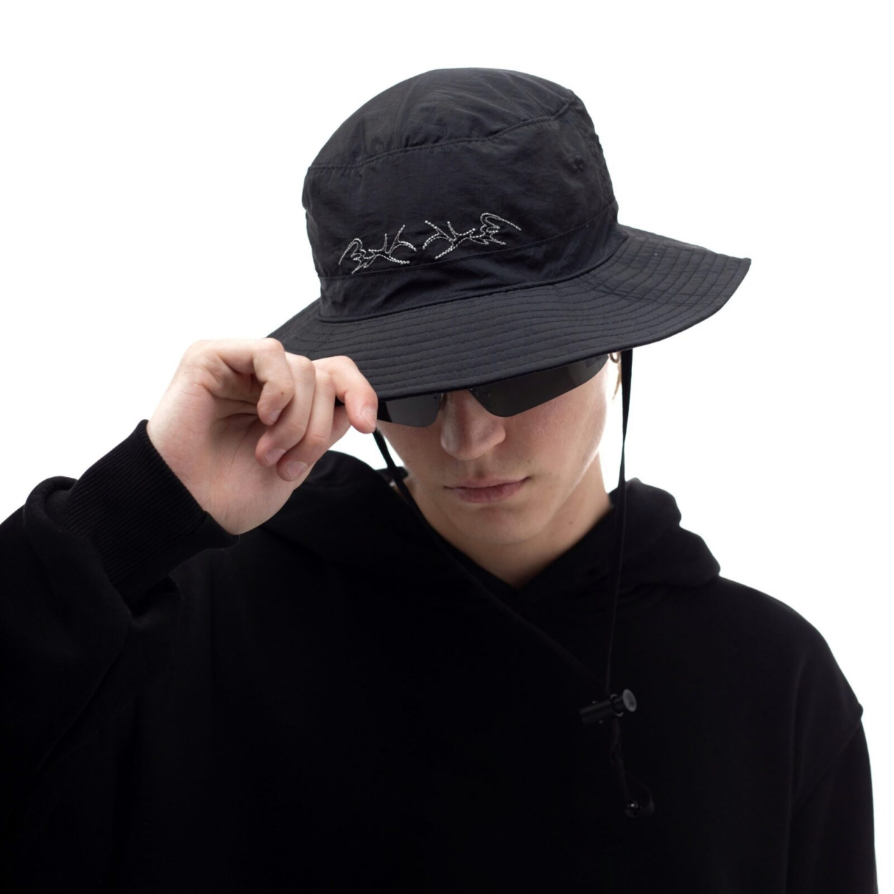 Mодель нейлоновой панамы в японском стиле с потайным карманом во внутренней частиПринт: вышивка в виде остаточного следа витиеватых узоров стилистики трайбл 2099
